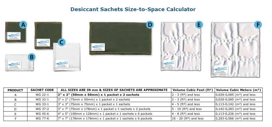 Please peruse our Desiccant Sachets Size-to-Space Ratio Table at the bottom of this page